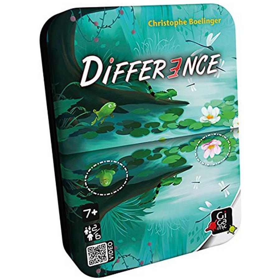 Based on the popular "spot the differences" challenges found in books, newspapers and elsewhere, Difference challenges your abilities to observe and react quickly. The deck includes two sets of double-sided cards, with one set being more challenging than the other. Place one card in the center of the table, then deal the rest out to players as evenly as possible.