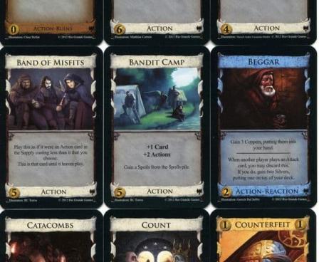 Dominion: Dark Ages is the seventh addition to the game of Dominion. It contains 500 cards but is not a standalone game. It adds 35 new Kingdom cards to Dominion, plus new bad cards you give to other players (Ruins), new cards to replace starting Estates (Shelters), and cards you can get only via specific other cards. The central themes are the trash and upgrading. There are cards that do something when trashed, cards that care about the trash, cards that upgrade themselves, and ways to upgrade other cards.