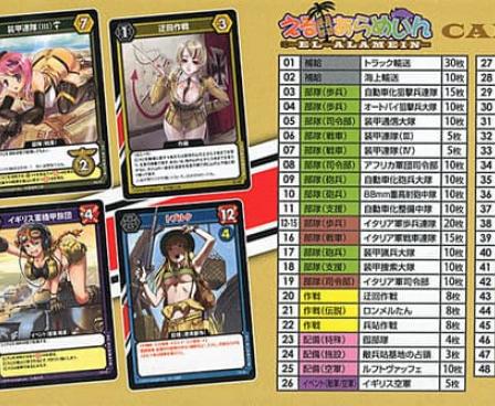 A sequel to Arclight's deckbuilding game Barba*Rossa (ばるば★ろっさ), El*Alamein depicts the first battle of El Alamein during WWII, as the Axis powers thrust through Africa to conquer Alexandria. Like its predecessor, the artwork in El*Alamein consists of scantily clad anime girls, although a historical edition featuring photographs is also available.