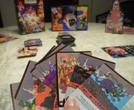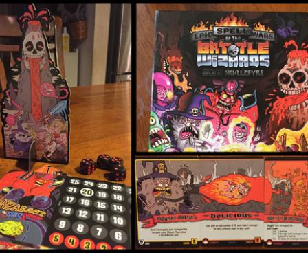 Epic Spell Wars of the Battle Wizards: Duel at Mt. Skullzfyre is a humorous card game depicting a vicious, over-the-top battle between a variety of comically illustrated wizards. The game focuses primarily on creating three-part spell combos to blast your foes into the afterlife. The unique Dead Wizard cards allow players to stay in the game even after their wizards have been defeated.