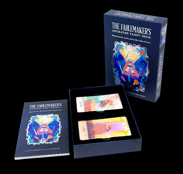The Fablemaker's Animated Tarot Deck uses lenticular technology to bring a new energy to tarot, each card featuring an 8-frame looping animation that comes to life when the card is tilted!