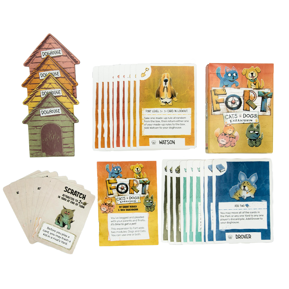 Fort: Cats & Dogs Expansion adds two modules to the Fort base game: dogs and cats. You can use one or both, as desired.