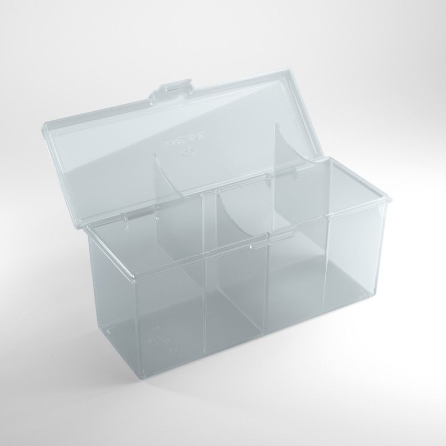 Full decks, dice, tokens or 320 double-sleeved cards: there is a lot that the Fourtress can hold and protect! This sturdy box is available in 5 different semi-transparent colors, allowing its contents to be easily identified. The integrated lock keeps it safely closed, while two inner walls can be removed to create bigger compartments. The boxes are stackable, so they are both perfect travel companions and a great storage solution at home.
