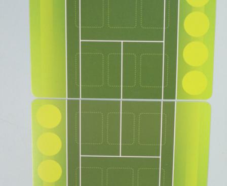 A turn consists of first playing a card to cover the shot your opponent played, then playing another card to dictate which of the six zones you'll hit the ball to. Finally, you play a preparation card, indicating which zones you're prepared to cover. The preparation card can be used to cover a shot if the appropriate zone is highlighted; otherwise you must cover the shot with a card from your hand, in which case the preparation card becomes the attack. Thus, by playing cards that your opponent cannot cover with her preparation card, you maintain control of the match because you'll see from where the next attack will come and will be able to prepare for that. Of course if a player cannot cover a shot at all, then the point is lost.