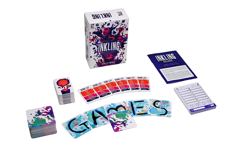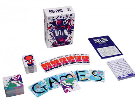 Inkling is a word game for 3-6 players with an innovative twist. Each turn, you play your letter cards in front of you, hoping the players next to you can glean the words you're trying to convey — but without the perfect letters you will need to get creative! How you go about that is up to you: rotate your cards, play them upside down or on their side, or have them overlap one another. Whatever it takes to get your meaning across...