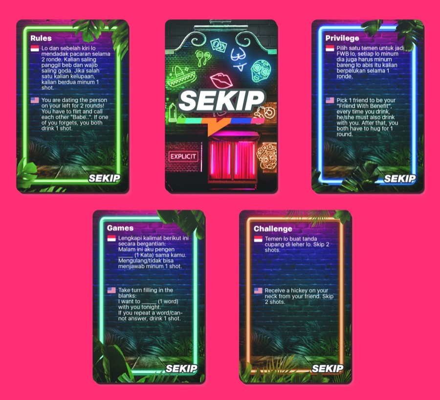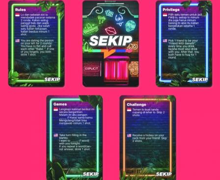 - Terdiri dari 5 Kategori yaitu CHALLENGE, GAMES, SIMPLY DRINK, RULES & PRIVILEGE. Dengan konsep yang lebih dewasa, udah dipastikan bakalan super seru banget!