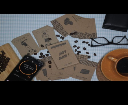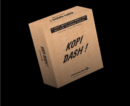 Card game yang cepat dan seru bisa dimainkan seorang diri atau berkelompok dengan 2 orang temanmu. Kopi Dash ! mensimulasikan serunya bekerja sebagai barista meracik berbagai minuman ngehits nan kekinian. Kopi Dash dicetak menggunakan bahan-bahan hasil dari daur ulang kertas, yang ramah lingkungan