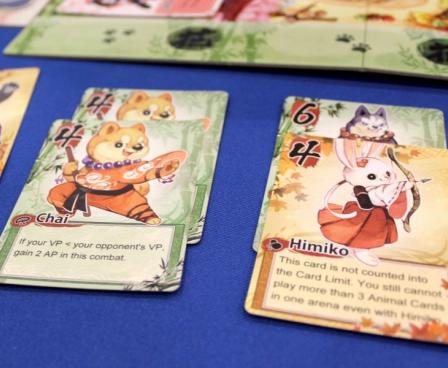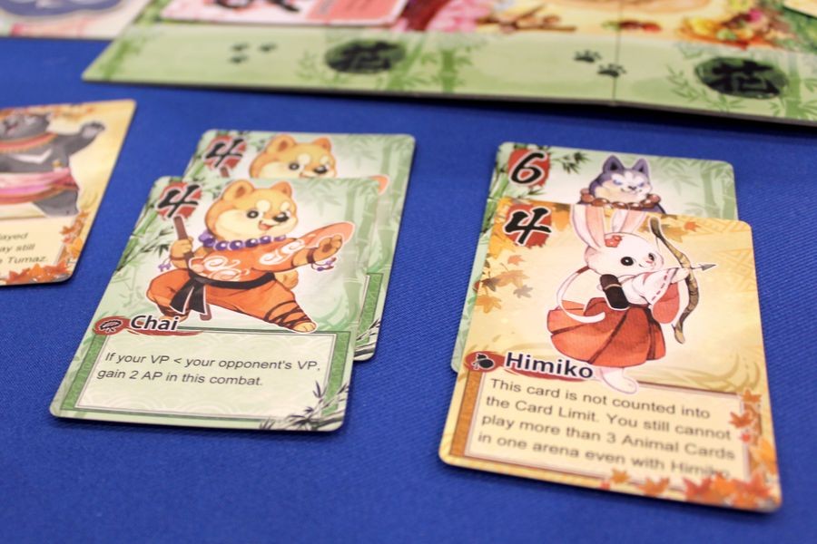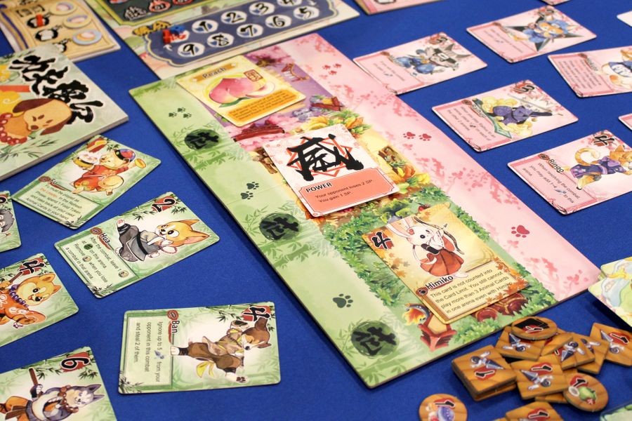 Kung Fur Fight is a fast-paced two-player card game where you will take on the roles of Monk Dogs and Ninja Cats to fight for the glory! Each round, you will assign your furry fellows in teams to combat in three arenas. The winner of each combat will gain victory points and bonus cards that might bring you new allies and useful items to get the upper hand. You also need to carefully choose the leader of each team because all these furry fighters have got some really cool Kung Fu to bend the combat rules. So raise your paws and fight for the clan!