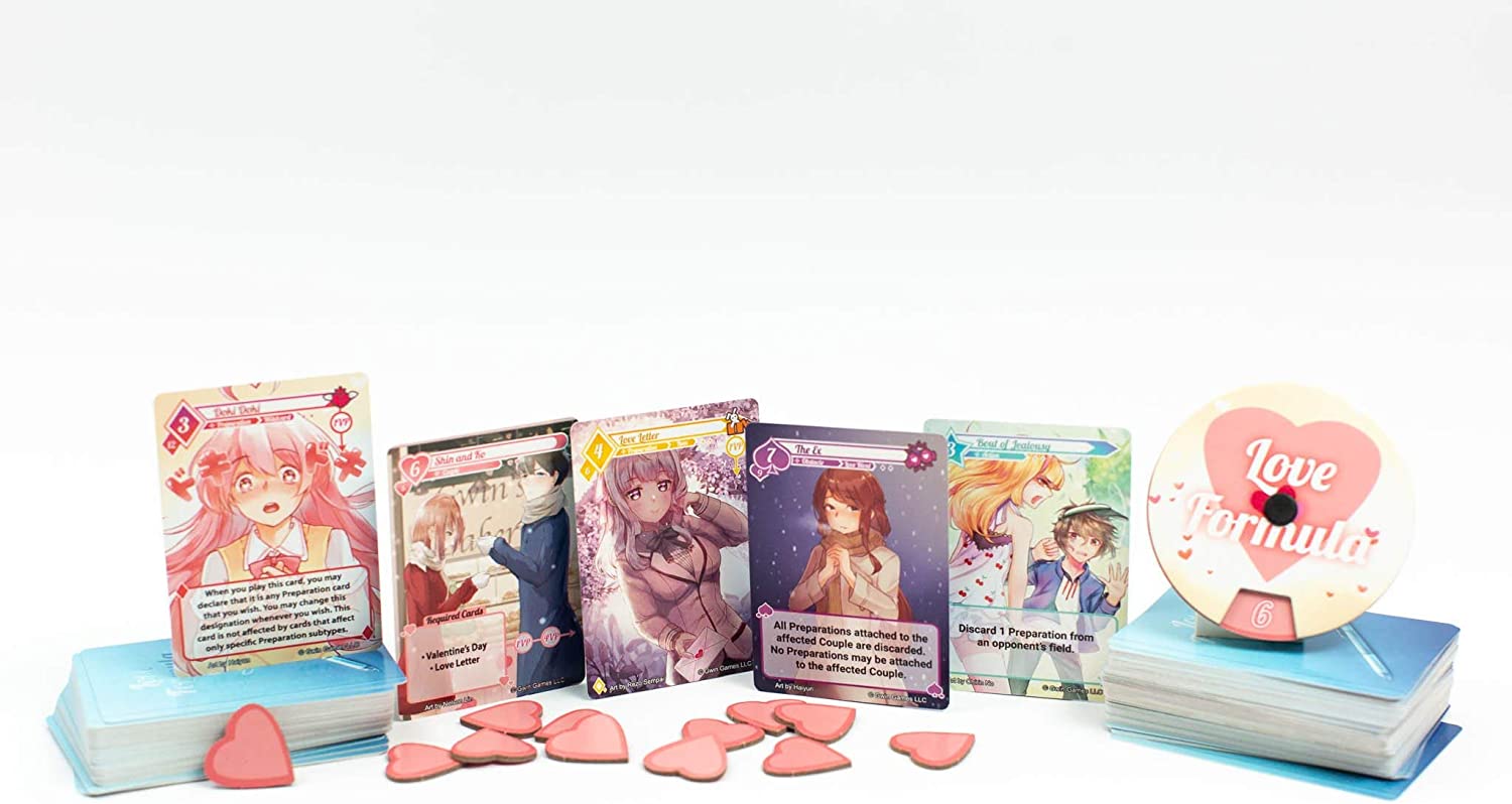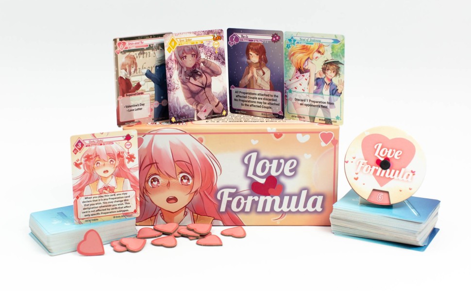 Love Formula is a card-drafting game for 2 to 4 players in which you attempt to set up couples you support on their perfect date while sabotaging the efforts of your opponents to do the same!