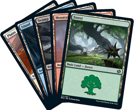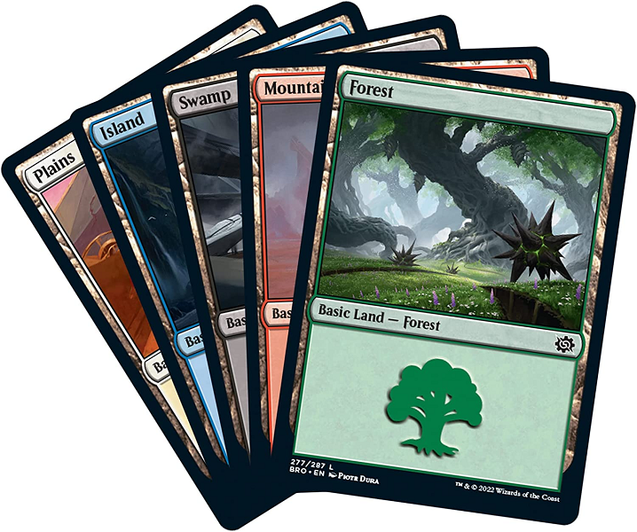 *Accessories—40 basic land cards (20 foil + 20 nonfoil), Spindown life counter (red or green) + card storage box