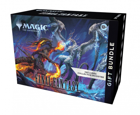 BUNDLE: GIFT EDITION CONTENTS—1 Collector Booster, 9 Play Boosters, 2 Traditional Foil Extended-Art cards, 32 Full-Art Land cards (16 foil, 16 nonfoil), 1 Spindown life counter, 1 special foil FINAL FANTASY card storage box, and 2 reference cards