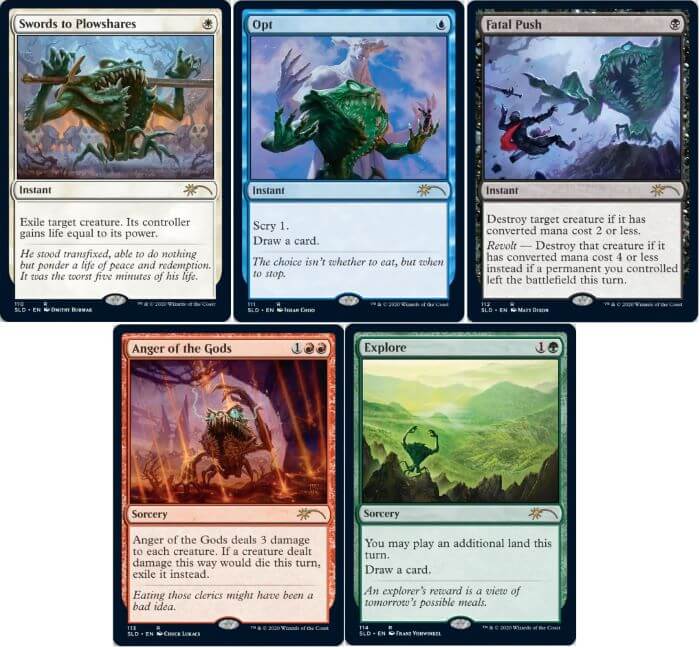 It seems a single card in Dominaria was not enough to appease this beautiful, cruel spirit, so we have printed several popular cards with new art celebrating his glorious visage. We fondly remember the sacrifices artists who undertook this daunting challenge: Dmitry Burmak, Jehan Choo, Matt Dixon, Chuck Lukacs, and Franz Vohwinkel. May Yargle have mercy on their souls.