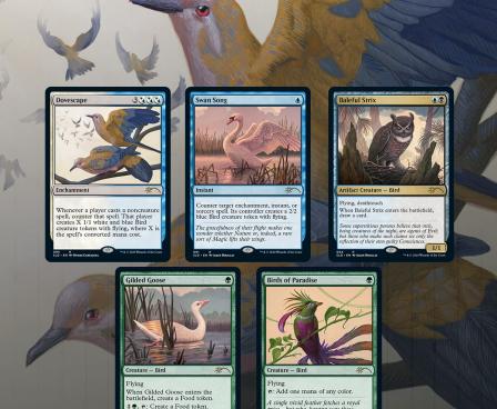 Of all of Magic’s fictional creatures, birds are far and away the most popular. First invented by Richard Garfield in 1987, birds eventually made their way into Alpha via the powerful “Birds of Paradise” card. We thought it would be cool to envision what birds would look like if they existed in real life, so we commissioned some naturalistic, classical illustrations from Ovidio Cartagena and Allen Douglas.