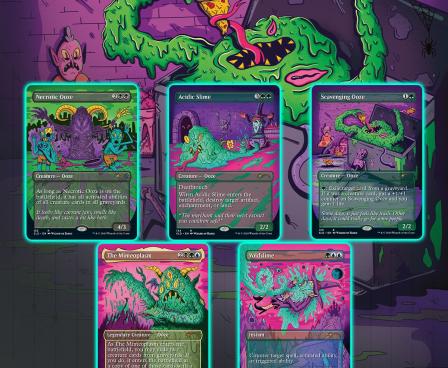 Sick of being early-game enemies or confined to cubes, these slimes are breaking the mold. Though you can see right through them, Wizard of Barge knows that their jiggly jelly bodies contain multitudes. Allow him to take you on an ooze cruise through FIVE different cards that explore the true nature of slimes. Just, like, bring a towel or wet naps or something.