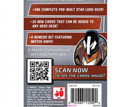 Lead the Guardians of the Galaxy into battle against the villain in the Star-Lord Hero Pack for Marvel Champions: The Card Game, which introduces Star-Lord as a brand-new playable hero, along with his fifteen signature cards. Fittingly, Star-Lord uses the Leadership sphere, and you’ll find a full assortment of new Leadership cards, as well as plenty of cards that reward you for uniting the Guardians of the Galaxy. With the new Guardian synergies unlocked, and a new player card for every sphere that rewards you for using the Aerial trait, you won’t want to let the Star-Lord Hero Pack fly past you.