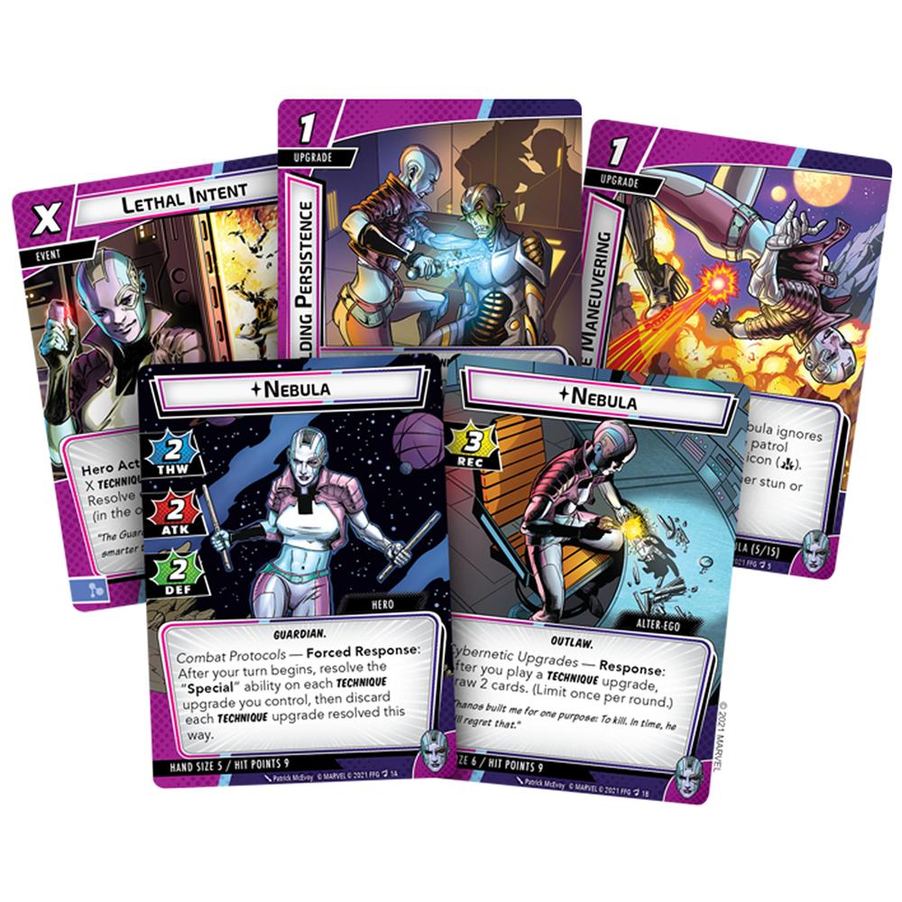As a sometimes-friend, sometimes-enemy of the Guardians of the Galaxy, Nebula blitzes into action in this expansion pack, which introduces her as a brand-new playable hero, along with her fifteen signature cards. With a pre-built Justice deck ready to go, you’ll be ready to try out Nebula’s technical gameplay from the moment you open the box. With a versatile range of abilities and the potential for some powerful combos, Nebula is a dangerous hero that should never be underestimated!