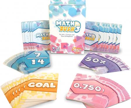 Math Rush is a timed, co-operative card game for 1-5 players who race to complete sets of matching cards in the right order.