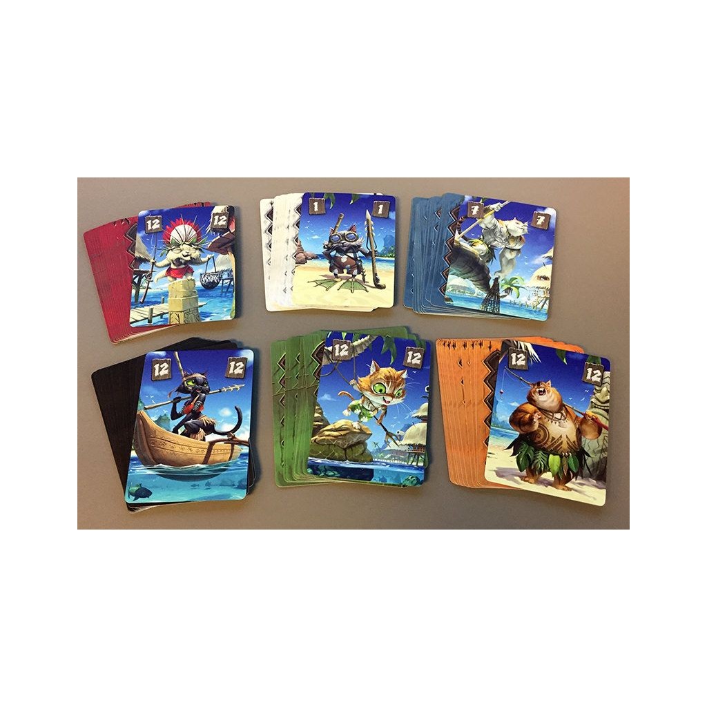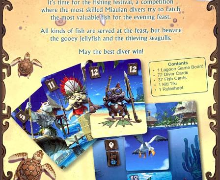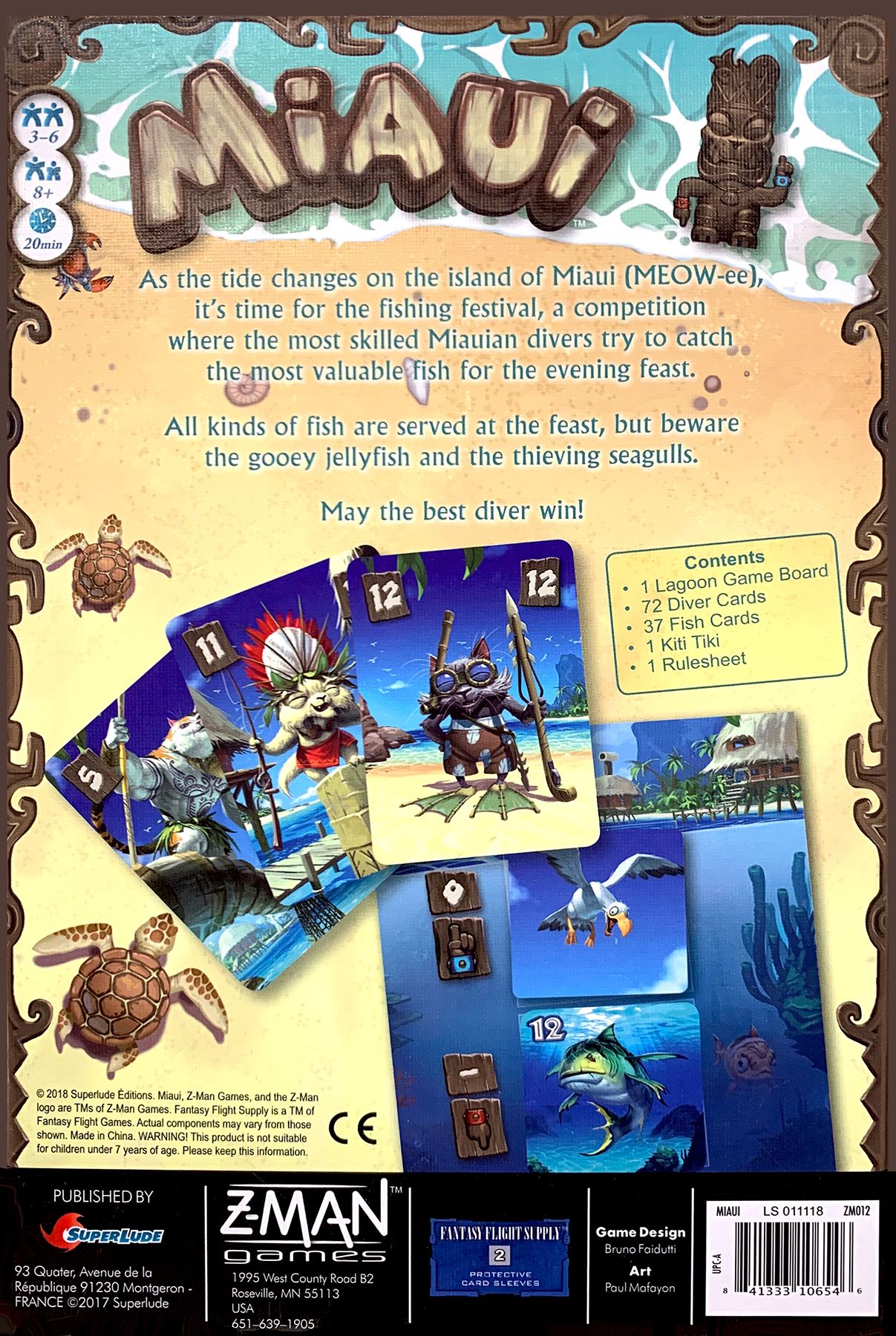Each round in Miaui, players choose one of the cards in their hand — and everyone starts the game with the same cards numbered 1-12 — to show how deep they dive in the hope of catching the best fish. All kinds of fish are served at the feast but beware the gooey jellyfish and the thieving seagulls.