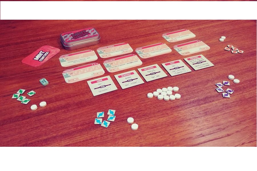 Mint Control is the newest entry into the Mint Series line of games. Mint Control is designed by the same designer as Mint Works and Mint Delivery as a deep strategy meets ease-of-play area control game that fits in your pocket, teaches in under a minute and plays in 30! It expands the world of these games such that these candy companies are now starting to vie for control.