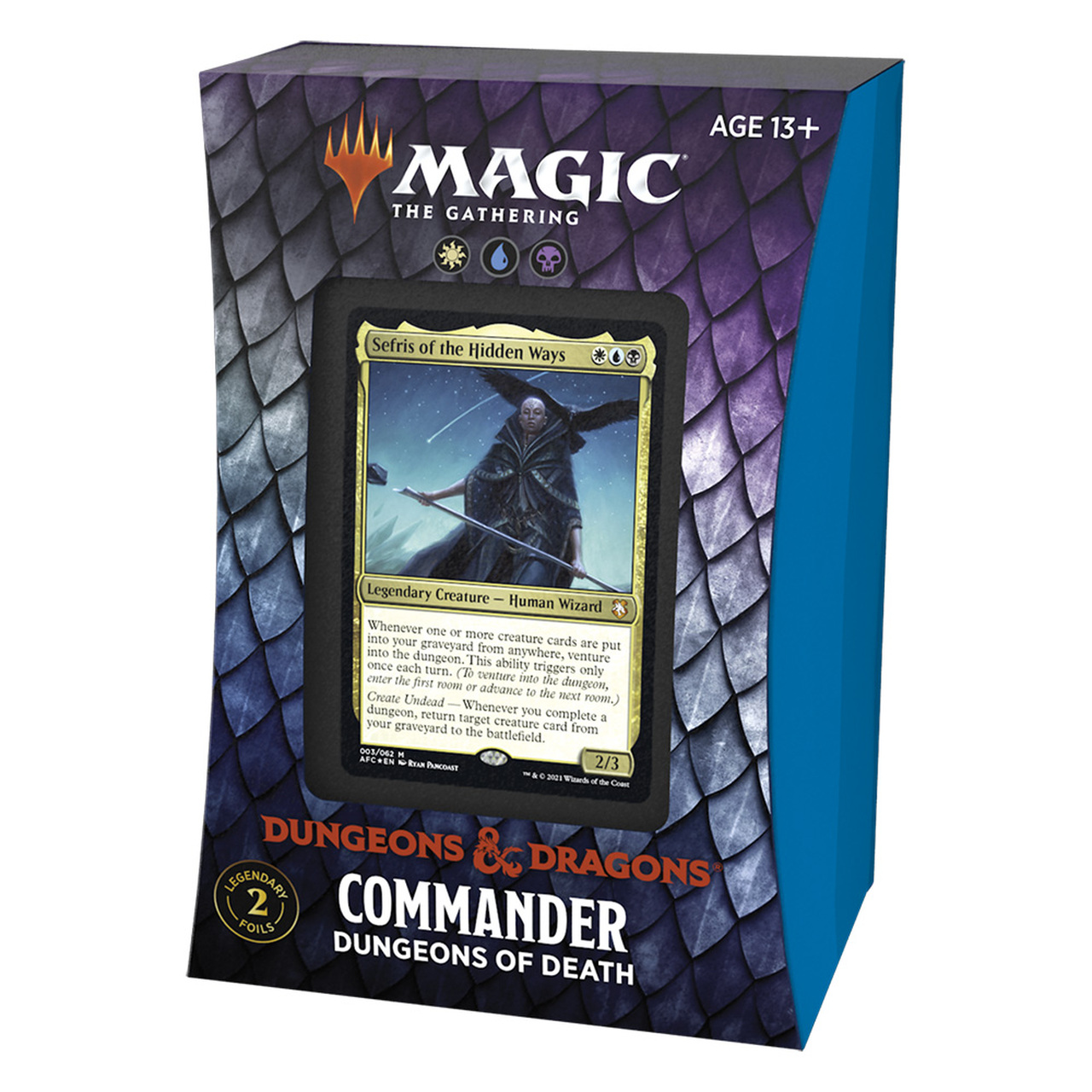 There are 62 new cards printed in the Dungeons & Dragons: Adventures in the Forgotten Realms Commander Decks These cards are legal for play in the Commander, Vintage, and Legacy formats. They aren't legal for play in the Standard, Pioneer, or Modern formats.