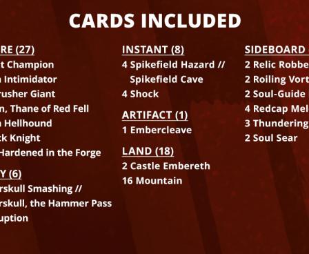 Four different 75-card decks—each featuring a different strategy—are ready to play out of the box wherever the Standard challenge awaits. Each Challenger Deck comes with a complete 60-card main deck and a 15-card sideboard, plus five double-sided tokens that you'll want to have on hand when you head into battle.