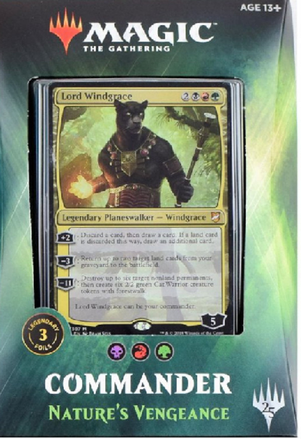 Commander is a unique and exciting way to play multiplayer Magic, featuring lots of legendary creatures and big, game-changing spells. Your deck is built around a single legendary creature (the "commander," which can be cast multiple times), and can use only cards within that creature's color idenity. A Commander deck must be exactly 100 cards, and can't contain more than one copy of any card other than basic lands, making it a fun challenge for a creative deck builder. Play in a multiplayer free-for-all and maximize your commander's strengths to make sure you're the last one standing!