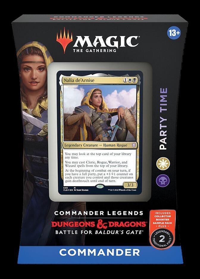 Commander Legends: Battle for Baldur's Gate introduces four new Commander decks. Each Commander deck includes a legendary "face" Commander as well as an alternate legend, plus a Background to use as Commanders. In total, each deck contains ten new-to-Magic cards.
