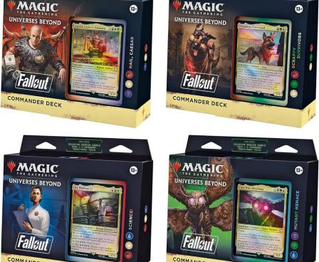 THE VAULTS ARE OPEN—Journey through the wastes with four 100-card decks, each introducing never-before-seen Magic cards featuring fan-favorite characters, thematic game mechanics, and art that explores the post-nuclear world of the Fallout series