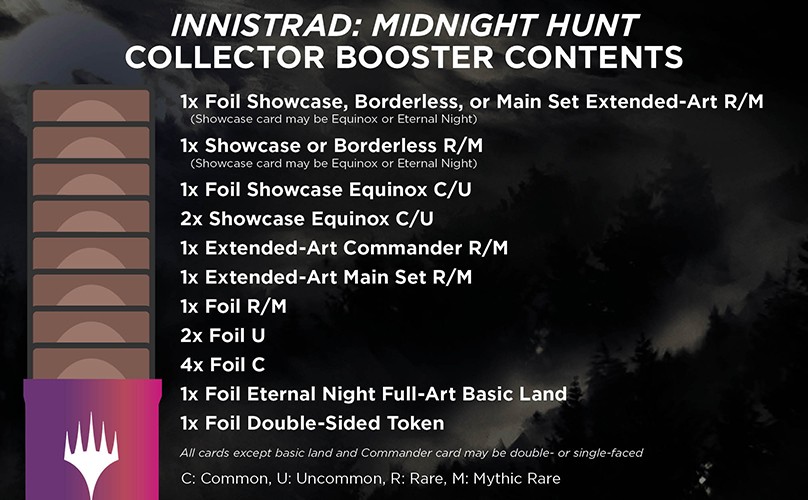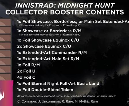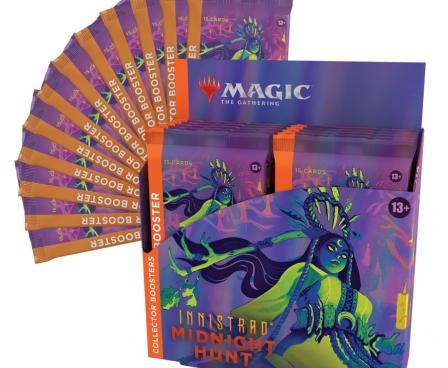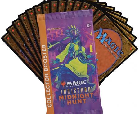 Excited to supercharge your collection with the coolest and shiniest versions of the latest cards? Collector Boosters are what you're looking for. Packed with traditional foil cards, amazing Booster Fun treatments, plus five rare or mythic rare cards, Innistrad: Midnight Hunt Collector Boosters can expand your collection with every booster.