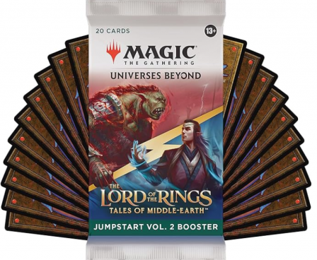 2 RARES + 2 FOIL LANDS IN EVERY PACK—Every pack contains 1 thematic Rare card designed specifically for Jumpstart Vol. 2 Boosters, 1 Rare or Mythic Rare from The Lord of the Rings: Tales of Middle-earth main set, and 2 Land cards with a shiny Traditional Foil treatment