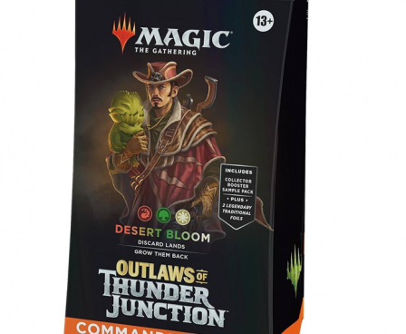 Each Outlaws of Thunder Junction Commander Deck includes: 100-card ready-to-play Outlaws of Thunder Junction Commander Deck; 2 Traditional Foil + 98 nonfoil cards 2-card Collector Booster Sample Pack 10 new-to-Magic cards 10 double-sided tokens 1 life tracker 1 strategy insert 1 deck box
