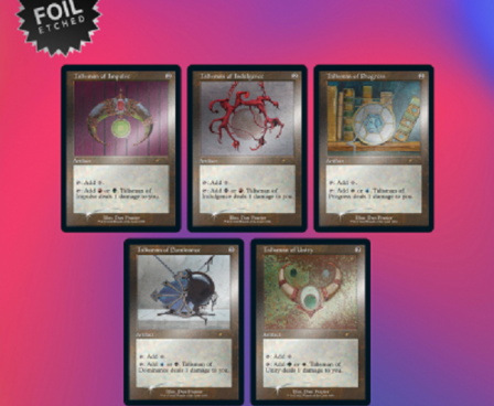 *1x Foil Etched Retro Frame Talisman of Progress *1x Foil Etched Retro Frame Talisman of Dominance *1x Foil Etched Retro Frame Talisman of Indulgence *1x Foil Etched Retro Frame Talisman of Impulse *1x Foil Etched Retro Frame Talisman of Unity