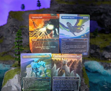 SHARED TO : 0 in stock 1210000 Weight: 250 gAgesMax: 100 Ages : 11+ Players : - Game Length : CONTENT DESCRIPTION Contents 1x Foil Light-Paws, Emperor’s Voice 1x Foil Murktide Regent 1x Foil Lightning Bolt 1x Foil Shorikai, Genesis Engine Log in or register to post comments Comments