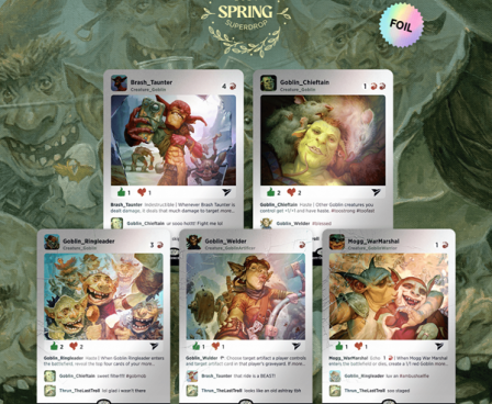 SHARED TO : 1 in stock 1320000 Enter Quantity 12345678910 Add to WishlistWeight: 250 gAgesMax: 100 Ages : 12+ Players : - Game Length : CONTENT DESCRIPTION Contents:1x Foil Brash Taunter1x Foil Goblin Chieftain1x Foil Goblin Ringleader1x Foil Goblin Welder1x Foil Mogg War Marshal Log in or register to post comments Comments