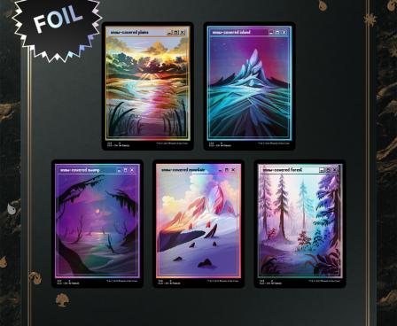 Upon further review, we believe it’s best to admire this beautiful pixelated snowscape by artist Jubilee from afar—like on a Magic card. These are some of the coolest Snow Basics we’ve ever printed, and they’re exactly what you’re looking for to elevate any deck or collection. Just skip the snowballs. Trust us.