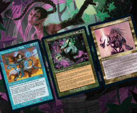 Teferi’s lost control of his time powers again! It would seem even someone well-acquainted with history is still doomed to repeat it. His latest chronomantic ‘whoopsie’ has pulled three more Planeswalkers into the time vortex—Nissa, Narset, and Tezzeret! The clock has turned back their card frames into retro displays, and the rules text is no spring chicken either. Thankfully, they’re expertly rendered by esteemed Magic artists Kev Walker, Scott M. Fischer, and Alex Horley-Orlandelli. In the event that Teferi manages to repair the timestream, you’d best not delay in picking up a copy!