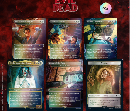 Contents 1x Foil Puresteel Paladin as “Ash, Destined Survivor” 1x Foil Vanquish the Horde as “Destroy the Dead” 1x Foil Zombie Apocalypse as “Knowby’s Incantation” 1x Foil Varina, Lich Queen as “Linda, Kandarian Queen” 1x Foil Field of the Dead as “Cabin of the Dead” 1x Foil Zombie Token