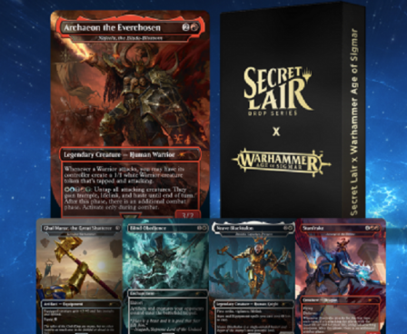 Conquer the Mortal Realms with these Warhammer Age of Sigmar Secret Lair cards. Each drop contains five cards (four of which are reskins) that will help you defeat Chaos once and for all—or embrace its power for your own purposes. These cards shine in any deck or collection, and will be monumental in leading your Grand Alliance to victory!