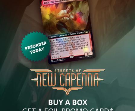 Bonus 1 buy a box promo card Jaxis, the Troublemaker setiap pembelian 1 Draft Booster box