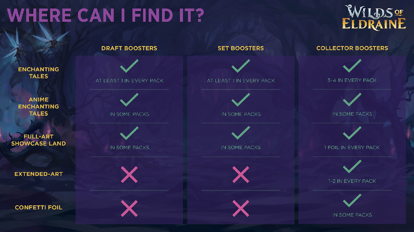 Wilds of Eldraine Collector Booster Packs are a shortcut to the most precious cards in Wilds of Eldraine — open a pack and fill your binder with rares, foils, special art, and showcase frames.