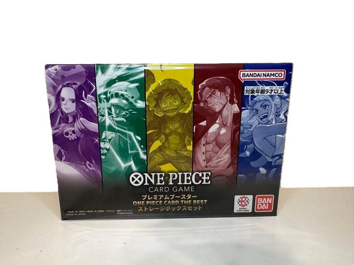 Contents Storage box : 1 pc (5 kinds) Bonus Pack: 2 cards per pack (total 7 kinds) ONE PIECE Card Game Premium Booster ONE PIECE CARD THE BEST [PRB-01]: 5 packs The type of storage box is random and cannot be selected. 2 cards are included at random out of 7 kinds.