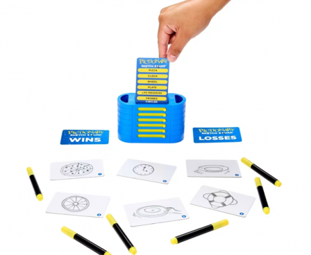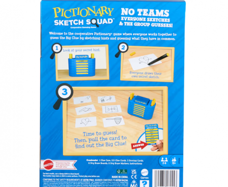 Pictionary Air Sketch Squad is a new way to play the classic drawing game! Players work together as one team in this cooperative game. Gameplay is simple, but always hilarious. Players sketch secret hints at the same time and then discuss the drawings with each other to guess the Big Clue that ties them all together. Figuring out the drawings and their connection can get heatedand hysterical! Pictionary Sketch Squad is a great party game for any game night with adults and teens!