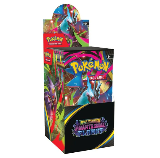 - Includes 18 Pokémon TCG: Mega Evolution—Phantasmal Flames booster packs
