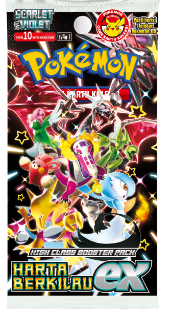 Para Pokémon Bersinar yang warnanya berbeda dari normal dan sangat jarang muncul hadir di High Class Booster Pack "Harta Berkilau ex"! Jumpai para Pokémon Bersinar dan coba cari perbedaannya dengan Pokémon yang warnanya normal!