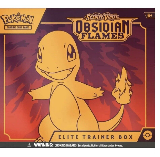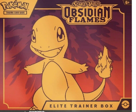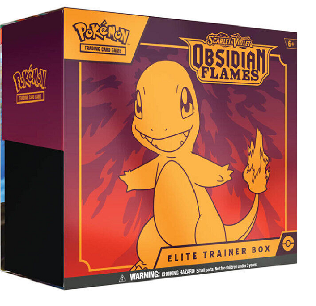 Raging Flames Forged in Darkness! Red-hot embers illuminate the pitch-black night and sparks flare into an inferno as Charizard ex surges forth with newfound powers of darkness! The glittering Terastal phenomenon imbues some Pokémon ex like Tyranitar, Eiscue, and Vespiquen with different types than usual, while Dragonite ex and Greedent ex show mastery of their own inner strengths. Not to be outdone, Revavroom ex, Melmetal ex, and more Pokémon promise to change the course of battle in the Scarlet & Violet—Obsidian Flames expansion!
