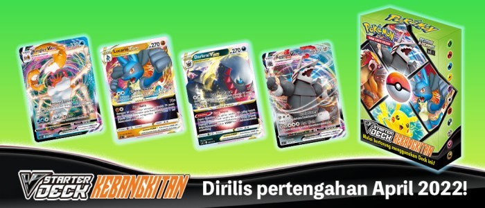 SHARED TO : 0 in stock 100000 Weight: 100 gAgesMax: 100 Ages : Players : 1- Game Length : CONTENT DESCRIPTION Release date 22 April 2022Pokemon TCG V Starter Deck Kebangkitan SCE Bahasa IndonesiaBerisikan 1 Deck random yang langsung bisa dipakai untuk dimainkan Log in or register to post comments Comments