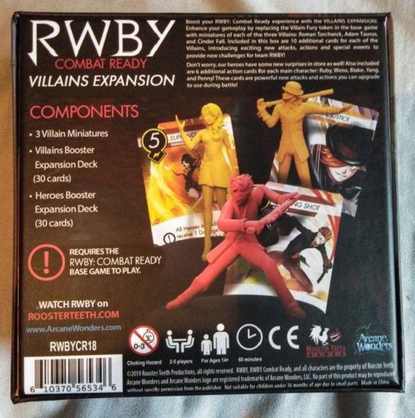 Replaces base game generic villain token with 3 villain specific miniatures, 10 new cards for each base game villain, 6 new cards for each of the five base game main characters.