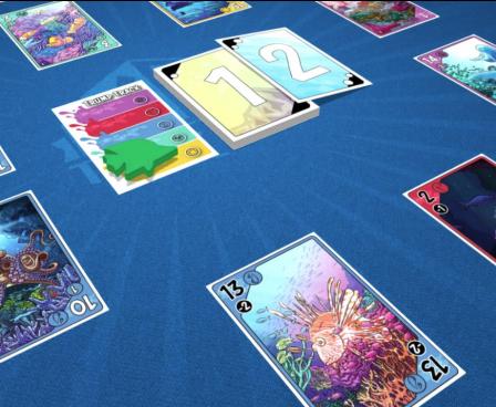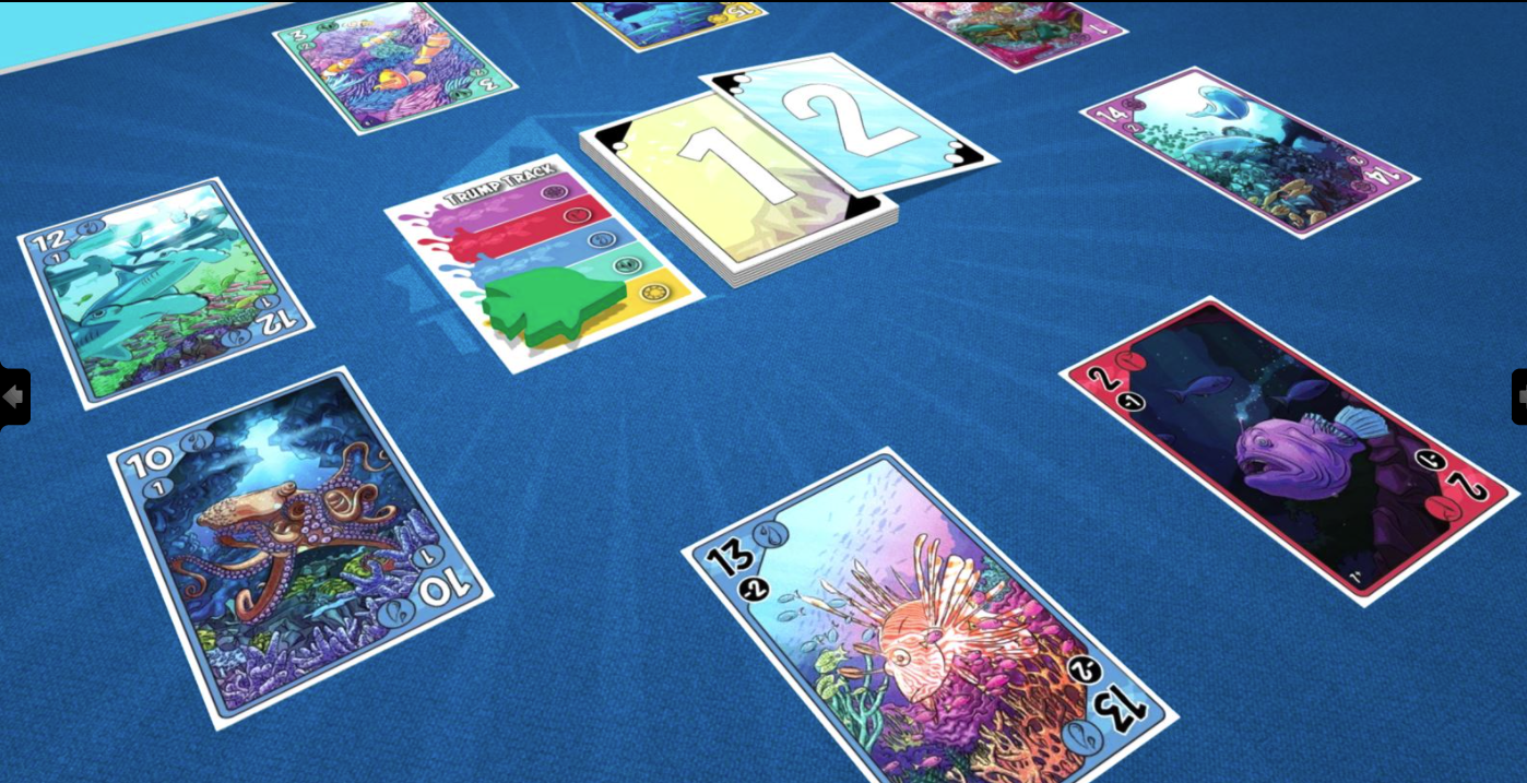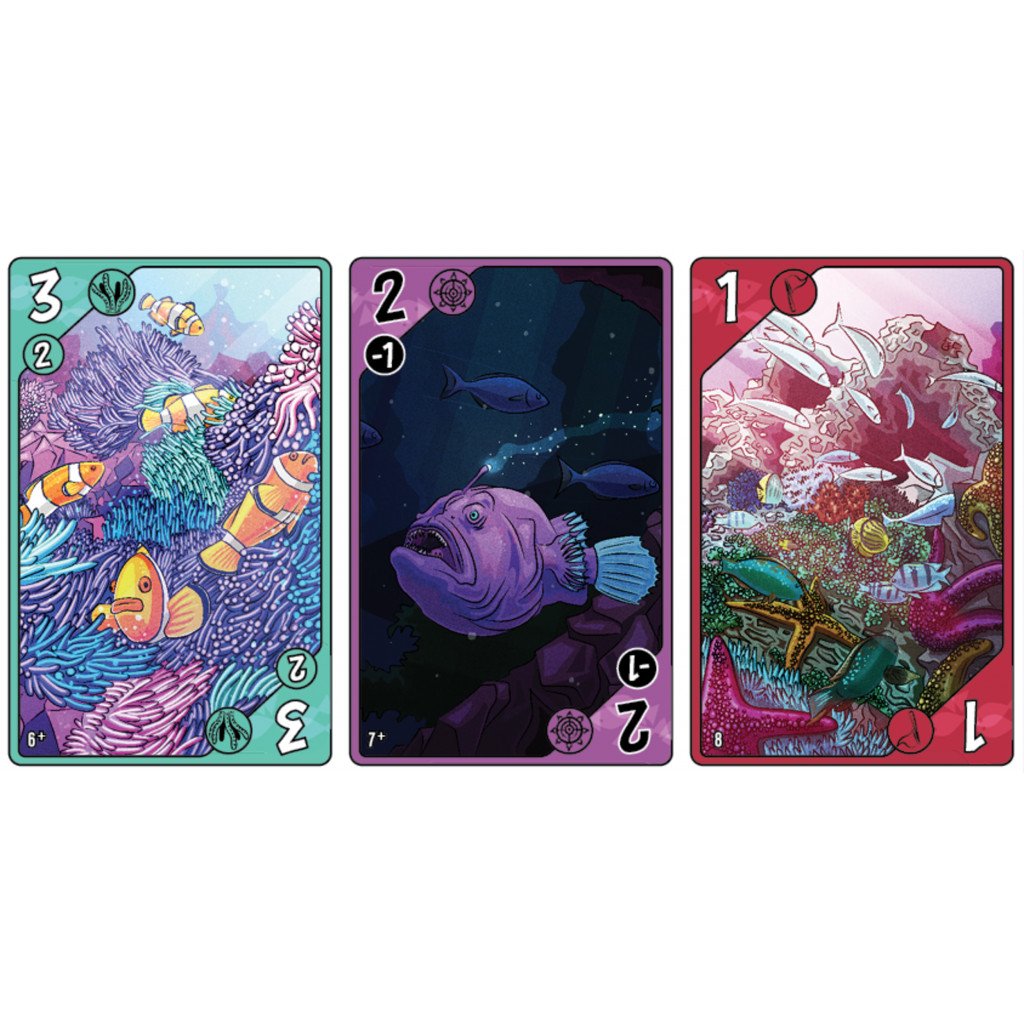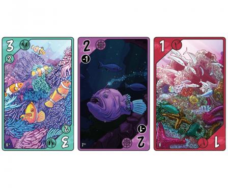 The deck contains 80 Sea cards in five suits. The five suits are represented by different colours and icons. Each suit has one card of each value; a higher card beats a lower card of the same suit — high (15) to low (0).