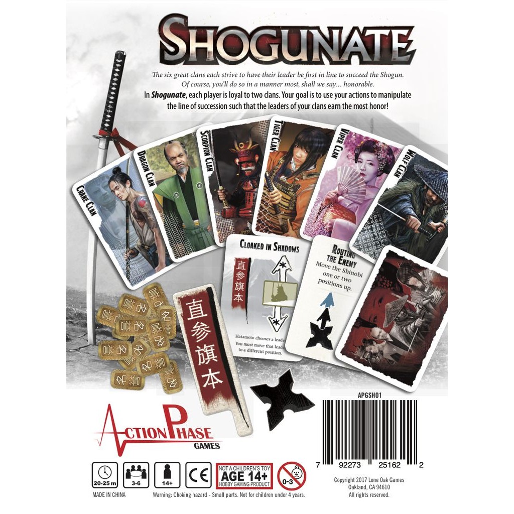 In Shogunate, each player is loyal to two clans. Your goal is to use your actions to manipulate the line of succession such that the leaders of your clans earn the most honor!