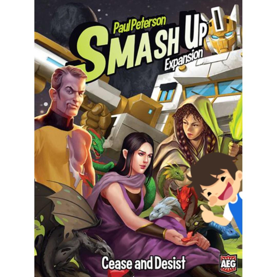 Smash Up: Cease and Desist can be played on its own as a two-player game or combined with other Smash Up titles to allow for up to four players to compete for control of bases at the same time.